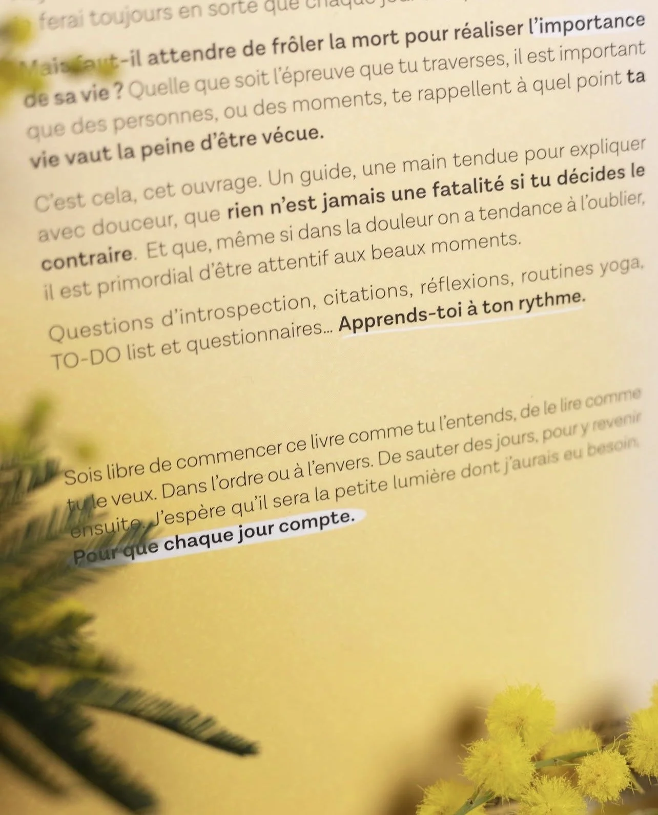 Julie Bourges publiait son livre Chaque Jour Compte — un ouvrage de développement personnel mêlant récit intime, introspection et guidance quotidienne. L'ambition : ne pas juste sortir un livre, mais créer un univers digital vivant qui prolonge son message au quotidien.